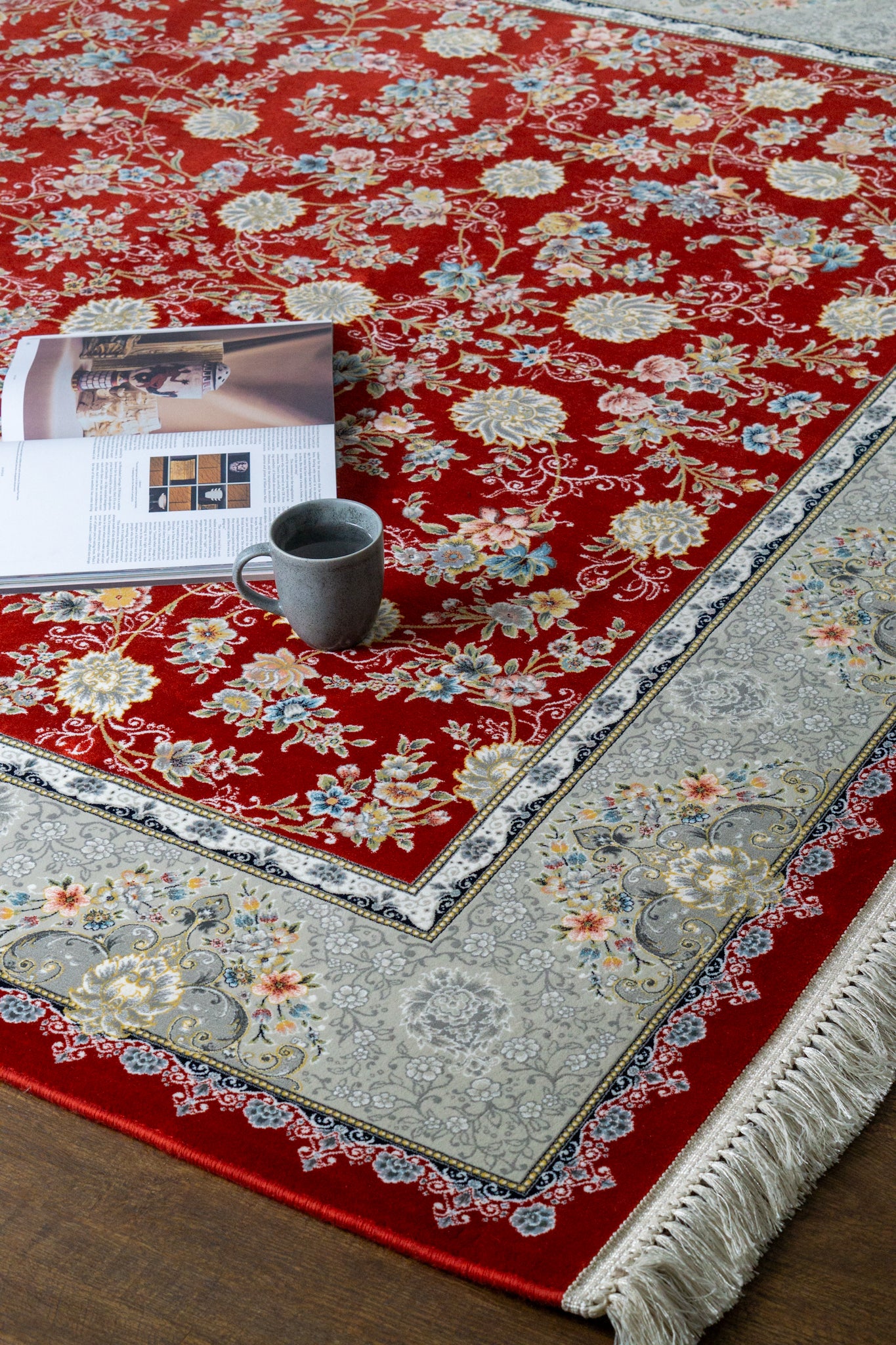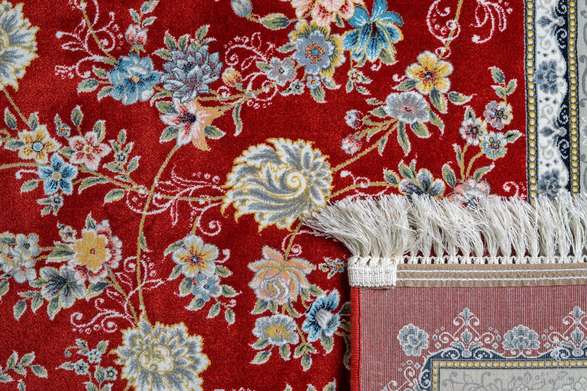 Hunar Bordered Blossom Fringe Rug
